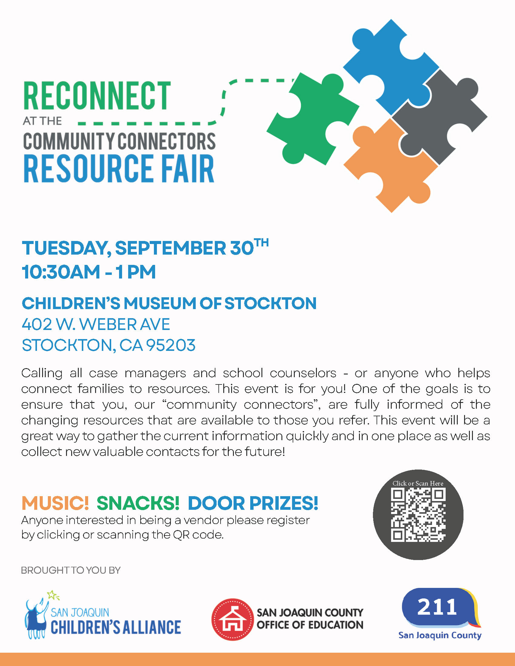 Calling all case managers and school counselors – or anyone who helps connect families to resources. This event is for you! One of the goals is to ensure that you, our “community connectors”, are fully informed of the changing resources that are available to those you refer. This event will be a great way to gather the current information quickly and in one place as well as collect new valuable contacts for the future!